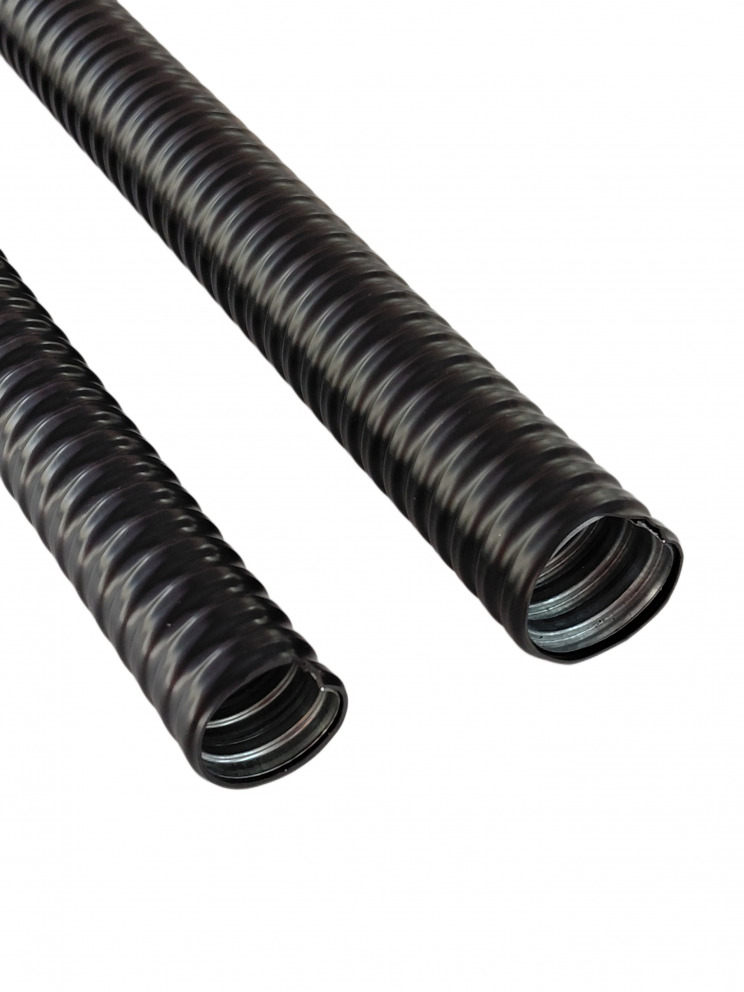 LIQUID-RESISTANT FLEXIBLE GALVANISED METAL CONDUIT. BLACK. LFMC.